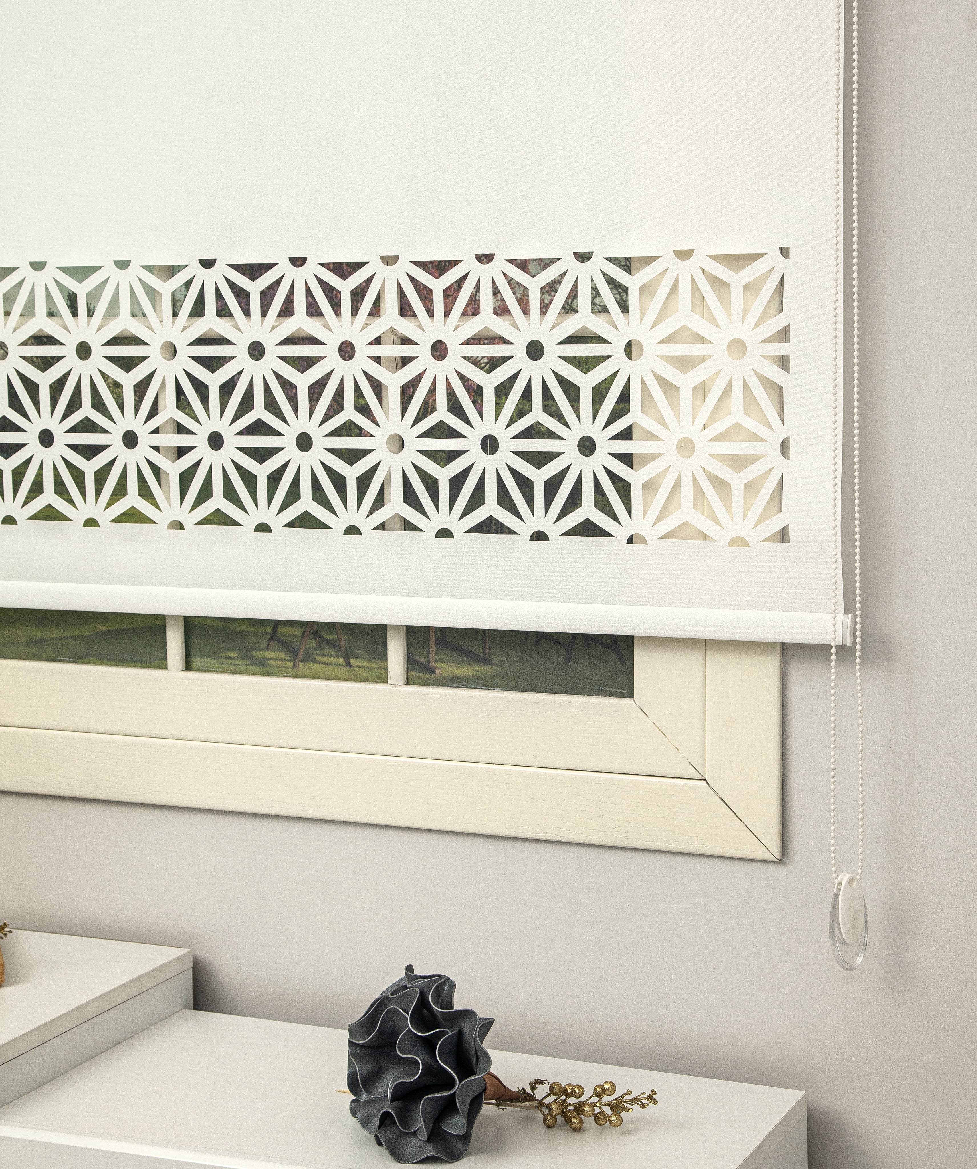 İleri teknoloji lazer kesim makinesi kullanılarak oluşturulan modern desenler ile bulunduğunuz ortamlarda daha şık bir hava katacak modern stor perde.